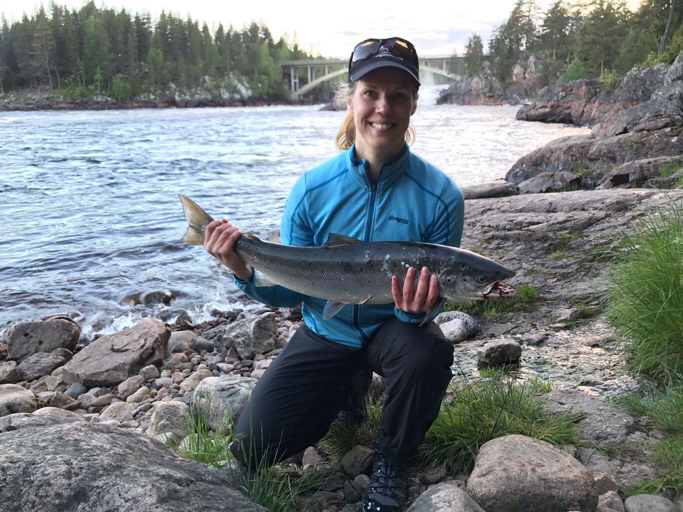 Erika med sin första lax fångad i Jockfall.