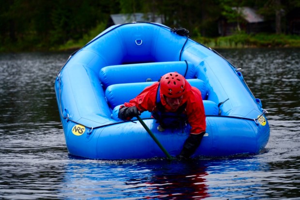 Som guide på raftingturer måste du kunna ta dig tillbaka upp i båten. Niclas visar hur man gör.