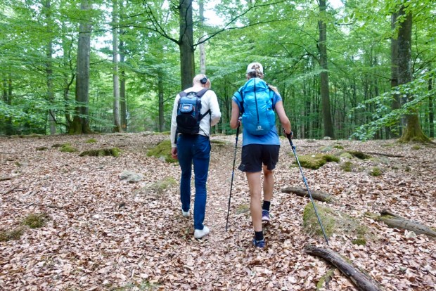 Ungefär halvvägs kom vi fram till Rövarekulans naturreservat. Där möttes vi av känslan av bokskog blandat med berg, då det var skiffersten längs med ravinkanterna och höga tak av bokträd som gav skugga överallt. Vilken härlig känsla!