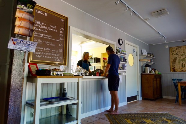 Söta Eva bjuder på hemmagjord flädersaft och blåbärslängd på Hunneberga B&B.