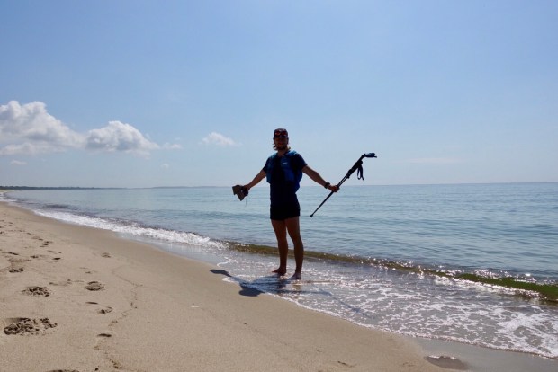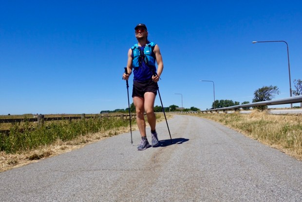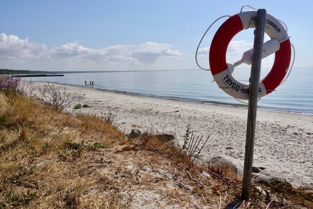 I vanligt ordning gasade solen varmt. Det börjar bli vardag för oss. Efter Fulltofta naturreservat hade vi några kilometer på asfalt innan vi nådde Ringsjöstrand. Där vi åt vi lunch. Leden övergår därefter på stig, vilket vi föredrar. Ett litet minus är dock att leden inte gick intill Östra Ringsjön.