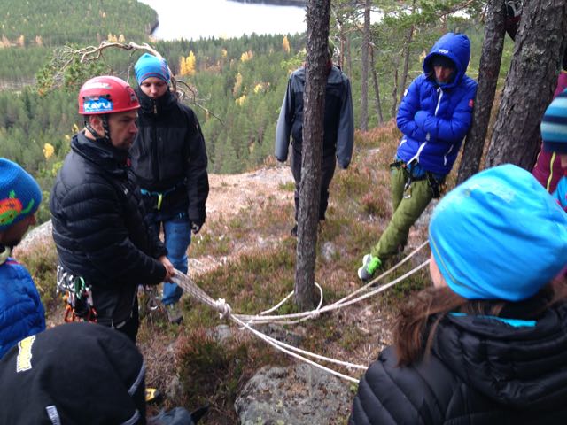 Utrustning: Lätt dagspackning. Klätterutrustning för alpinklättring (kilar mm), samt utrustning för firning.