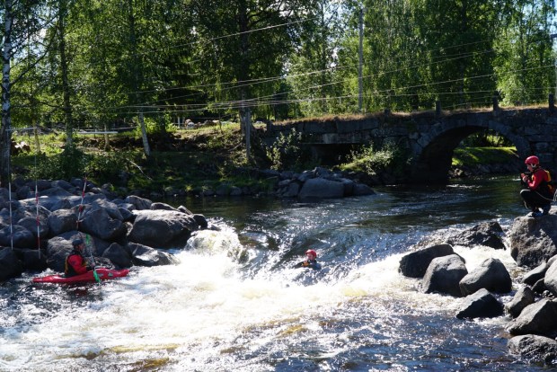 Idag har vi varit till Dala-Floda, där Kajaktiv som hjälper oss med utrustning för denna tur har sitt säte. Vi hade med oss forskajaker och har både simmat och paddlat i Lissforsen.