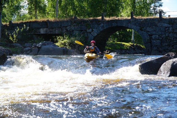 Efter lunch satte vi oss i forskajakerna och övade räddningstekniker, samt fick testa på att paddla genom forsen. Vi blev också indelade i två grupper där den ena fick börja att paddla forsen medan den andra skulle ställa upp sig för att vara beredda för ev räddningsaktion.