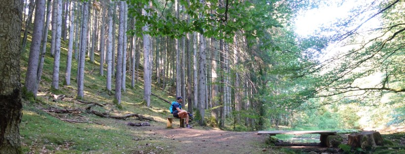 Ungefär halvvägs kom vi fram till Rövarekulans naturreservat. Där möttes vi av känslan av bokskog blandat med berg, då det var skiffersten längs med ravinkanterna och höga tak av bokträd som gav skugga överallt. Vilken härlig känsla!