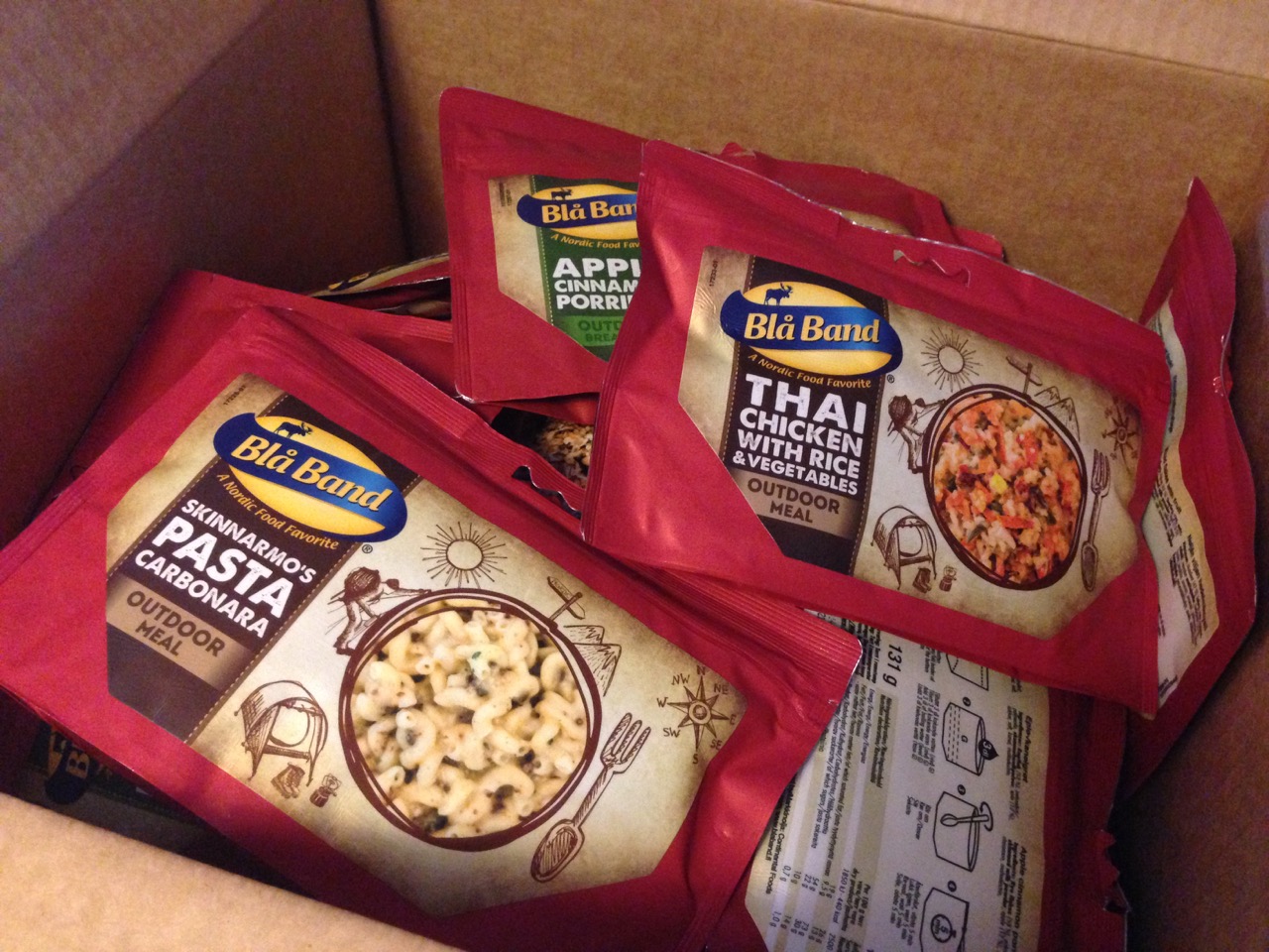 Vi är därför glada att samarbeta med 24 Hour Meals, som har ett stort utbud av mat och snacks som passar bra för friluftsmänniskor. De distribuerar Blå Bands turmat, vilka både är näringsrika och smakar gott. Utformningen av portionspåsen är väl genomtänkt, då den är lagom hög och bredare nertill, vilket innebär att du inte behöver ”grisa ned” handskarna när du stoppar ner skeden i påsen. Varje portionsförpackning innehåller 650 kcal och deras frukostar innehåller 600 kcal.