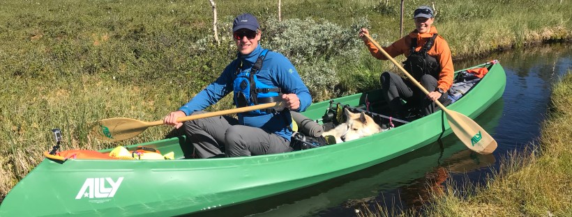 Förberedelserna har innehållit allt ifrån kartstudier, jagat information om de olika vattnen, test av utrustning, paddelträning och inte minst att lära vår hund Storm att trivas i kanoten. Vår ambition har hela tiden varit att ha honom med, men vi var länge osäkra om det skulle fungera. Sista turen innan avfärd hittade han dock lugnet och vi beslutade att han kvalade in. Det är vi glada för. Att långtura med sin hund är en extra dimension.