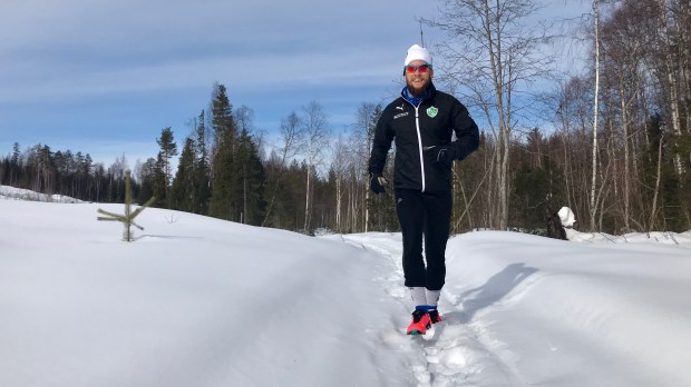 Vinterlöpning i strålande solsken sätter leendet på plats för resten av dagen. Foto: Erika Nilsson-Waara.