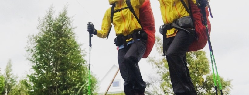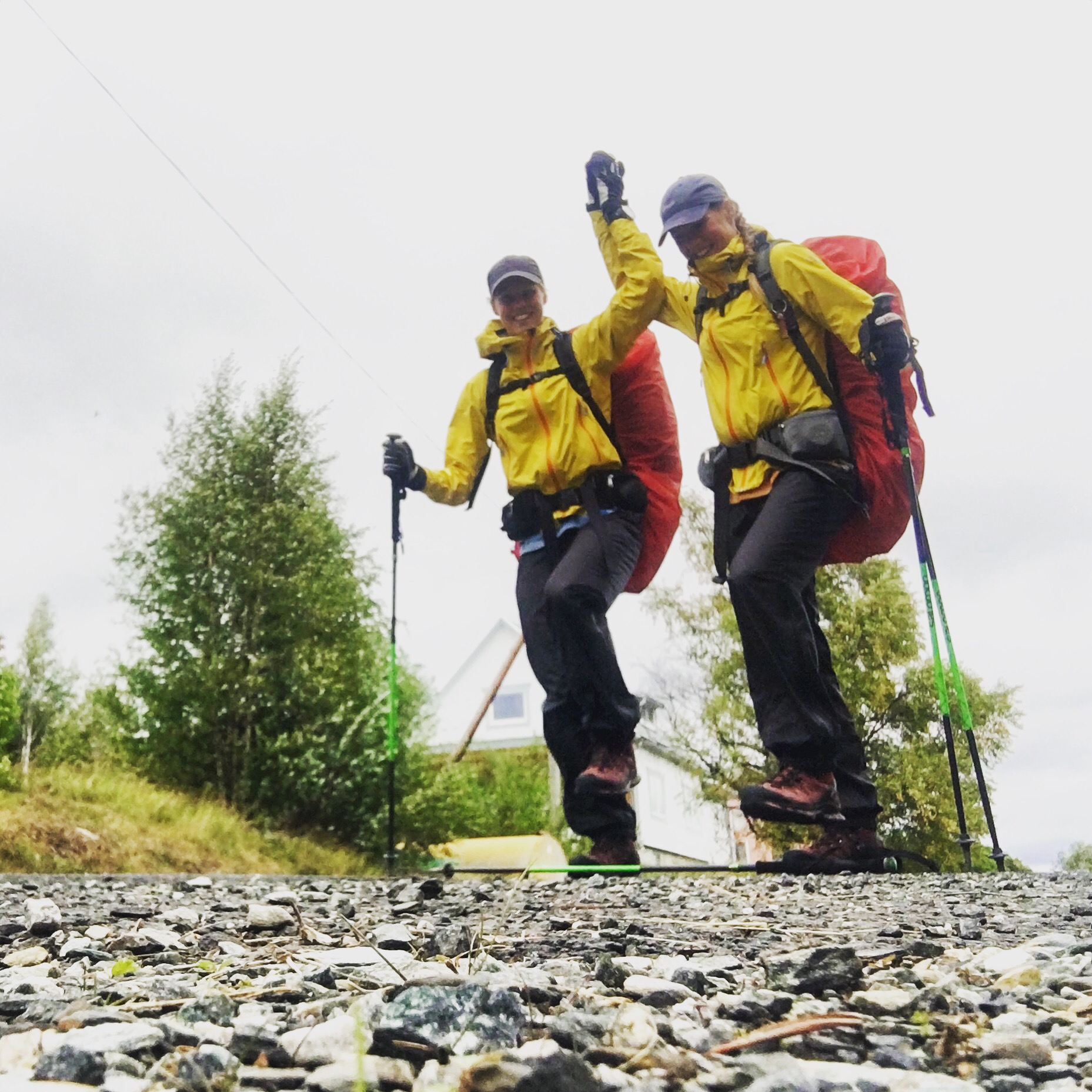 3. Kläder: Ett underställ räcker! Om det mot förmodan skulle bli riktigt kallt får du tänka: ”Om jag skulle pälsa på mig samtliga plagg jag har – skulle jag frysa då”? Vi vandrar i ett set kläder, har med oss regnställ och dunjacka, samt vantar, mössa, trosor och strumpor. Som ombyte/förstärkningsplagg har vi med oss ett långärmat underställ och långkalsonger i merinoull. Det enda extra vi har med oss är ett par strumpor. När vi kommer fram till våra tvättstationer får vi första dagen gå omkring i väldigt sparsamt med kläder, tex regnstället på inomhus 😉