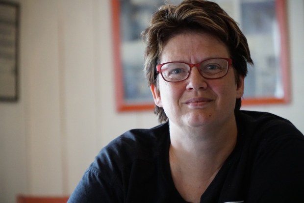 Michelle Svensson är dotter till initiativtagaren för Pilgrimstapeten. Michelle vistas ofta på Utmarksmuseét och för bland annat statistik över antalet besökare. Foto: Niclas Bentzer