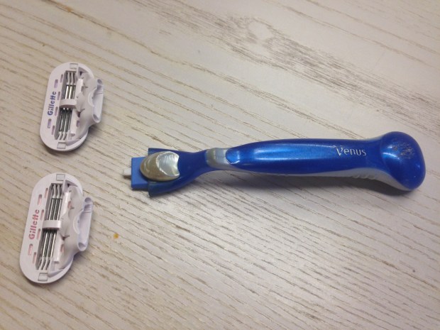 Personligt rakblad och delad hyvel. Kanske inte den mest prioriterade prylen. I efterhand borde vi ha skickat ut engångshyvlar i depåerna. Vi lär oss hela tiden.