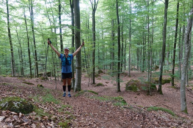 Sträckan hade varierat underlag med allt från bokskog och lövstig till grusväg med öppen himmel. Vädret var mulet men fortfarande varmt och enormt kvavt. Det fanns inga matställen längs vägen så lunchen fick bli färdmacka. Vi fick även slut på vatten de sista kilometrarna.