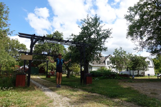 Dagens sista 16 km blev något slätstrukna; skogsvägar med tryckande sol och inga möjligheter till att fylla på med vatten, men till slut når vi dagens slutdestinationen Brännestad.