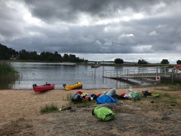 Inför korsandet av Vänern bytte vi vår kanadensare mot varsin havskajak och därmed tog Storms resa slut. I en kajak ryms inte 25-kilo hund.